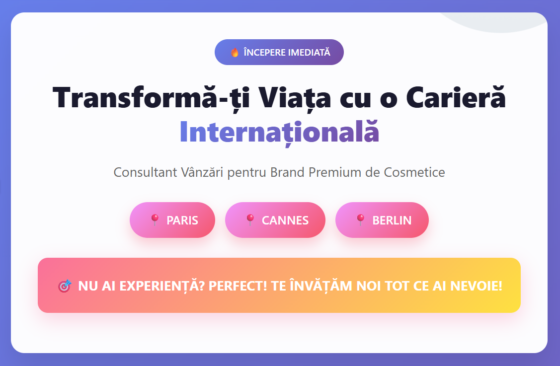 Specialist Vânzări pentru Brand Premium de Cosmetice la Paris sau Berlin