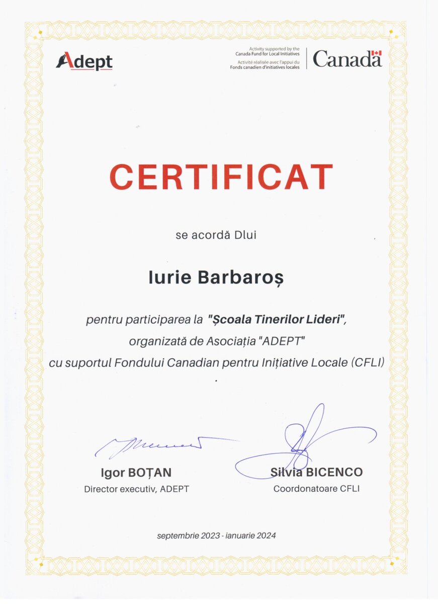 School of Young Leaders, ADEPT Certificate (september 2023 — january 2024)