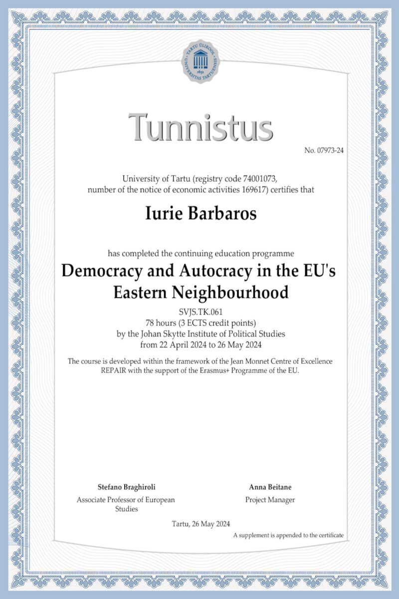 University of Tartu Democracy and Autocracy in the EU's Eastern Neighbourhood Certificate