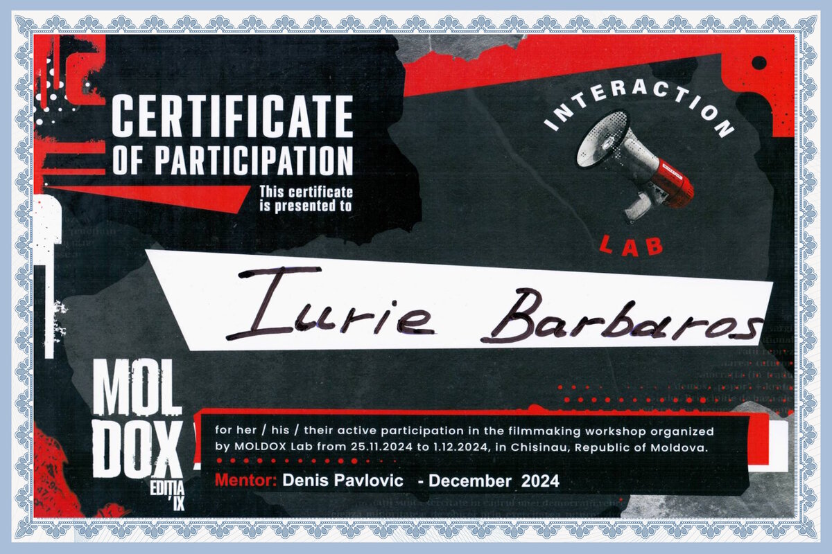 25.11 — 1.12.2024 Moldox Lab Interaction Module with Denis Pavlovic film maker. The documentary film „3 Women in War” resulted: https://www.youtube.com/watch?v=luLaLvURgcE