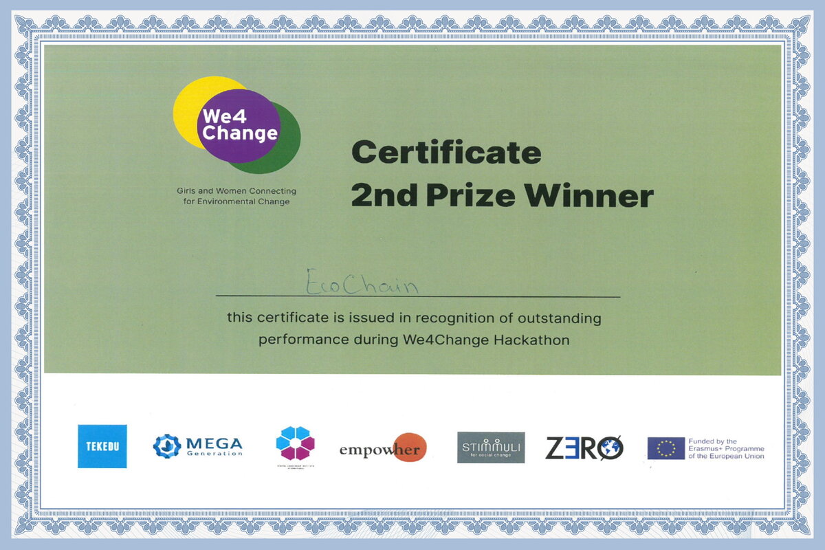 Certificat pentru ”EcoChain Project” în cadrul prezentării la EcoVillage, 2022