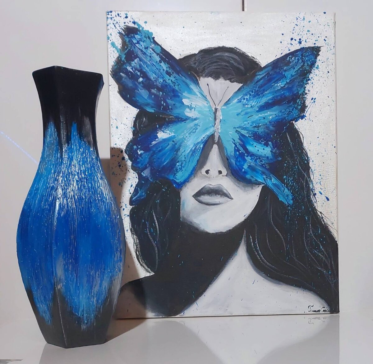 Tablou pictat manual de pânză din bumbac 45x60cm în culori acrilice, șasiu din lemn natural (plop), nu necesită ramă.