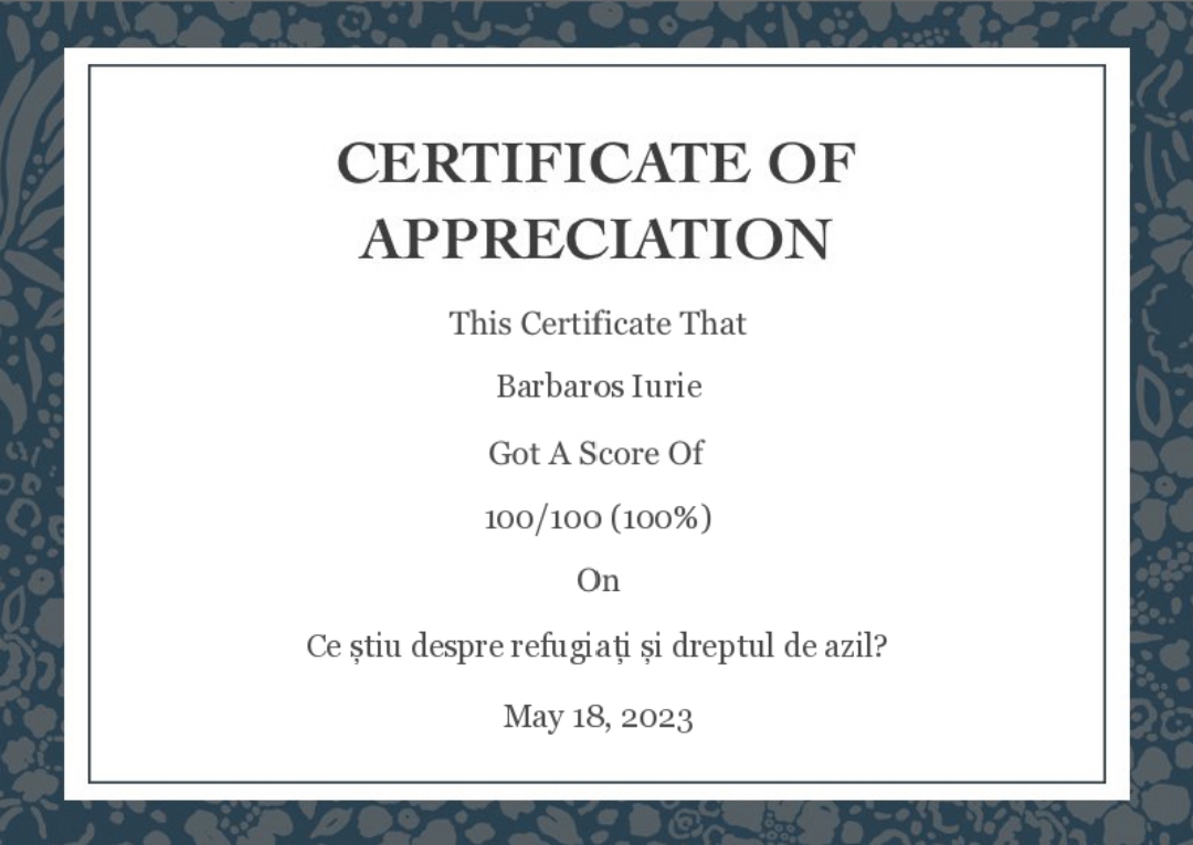 Certificat de apreciere, Asociația Obștească „Centrul de Drept al Avocaților” (CDA) din Moldova, Mai 2023